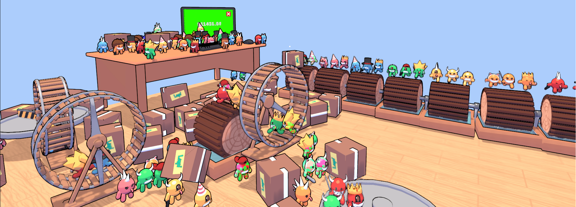 Dude yall got something here. It's like a pokemon, room design, idle game. Lean heavy into the characters design and designing a whole house and it is going to sell. Even have evolutions like they can get bigger and do the dishes. lol. I am telling ya, this is a fantastic idea. People love designing and people love pets. Great job.